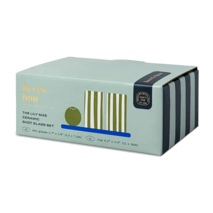 The Lily Mae Ceramic Tequila Shot Glass Set w/ Tray and Shaker - Cobalt + Olive